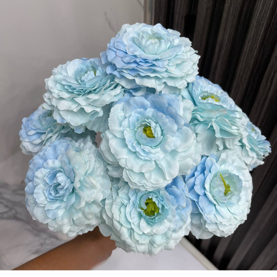 باقة أنيقة من الزهور الصناعية بلون أزرق فاتح، مصممة بعناية لتعكس نعومة وجمال الطبيعة. مثالية لتزيين المزهريات أو تنسيق حفلات الزفاف والمناسبات الخاصة.