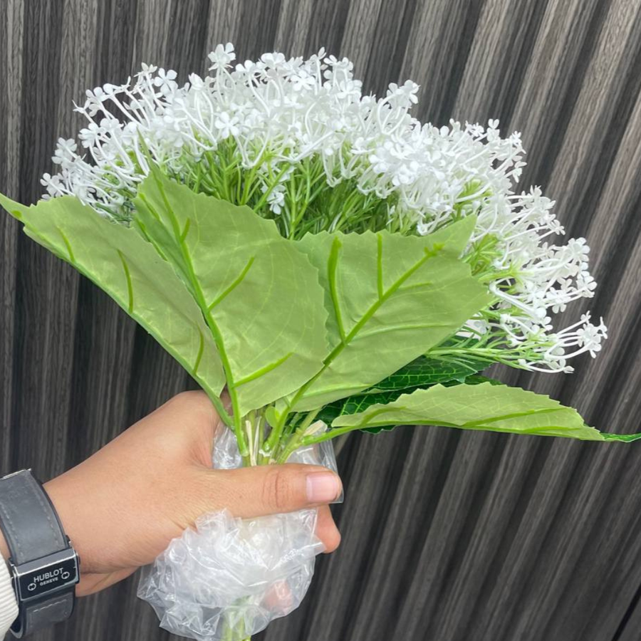 بوكيه ورد صناعي فاخر بلون أبيض نقي، يجمع بين البساطة والرقي في تصميم مميز. مصمّم بدقة ليبدو وكأنه ورد طبيعي، مع خامات عالية الجودة تمنحه ملمسًا واقعيًا ومظهرًا أنيقًا. مثالي كهديّة راقية أو كقطعة ديكور تضيف لمسة من الصفاء لأي مساحة داخلية.