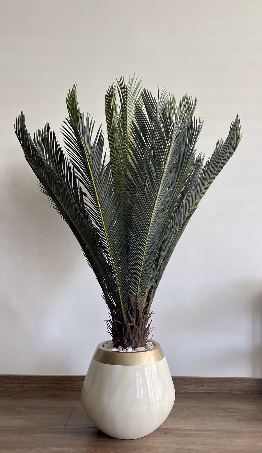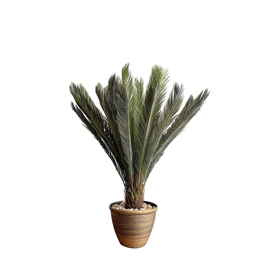 شجرة نخيل صناعية بارتفاع 125 سم، تصميم واقعي وأوراق خضراء فخمة تضيف لمسة طبيعية راقية لأي ديكور داخلي. مثالية للمنازل والمكاتب. توصيل داخل مص