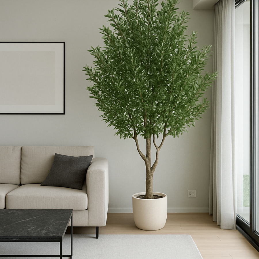 تتميز الشجرة بتصميم دقيق يُجسّد تفاصيل شجرة الزيتون الحقيقية، من الأوراق الخضراء الرفيعة إلى الجذوع المصنوعه بعناية ليبدو الشكل طبيعيًا وأنيقًا.