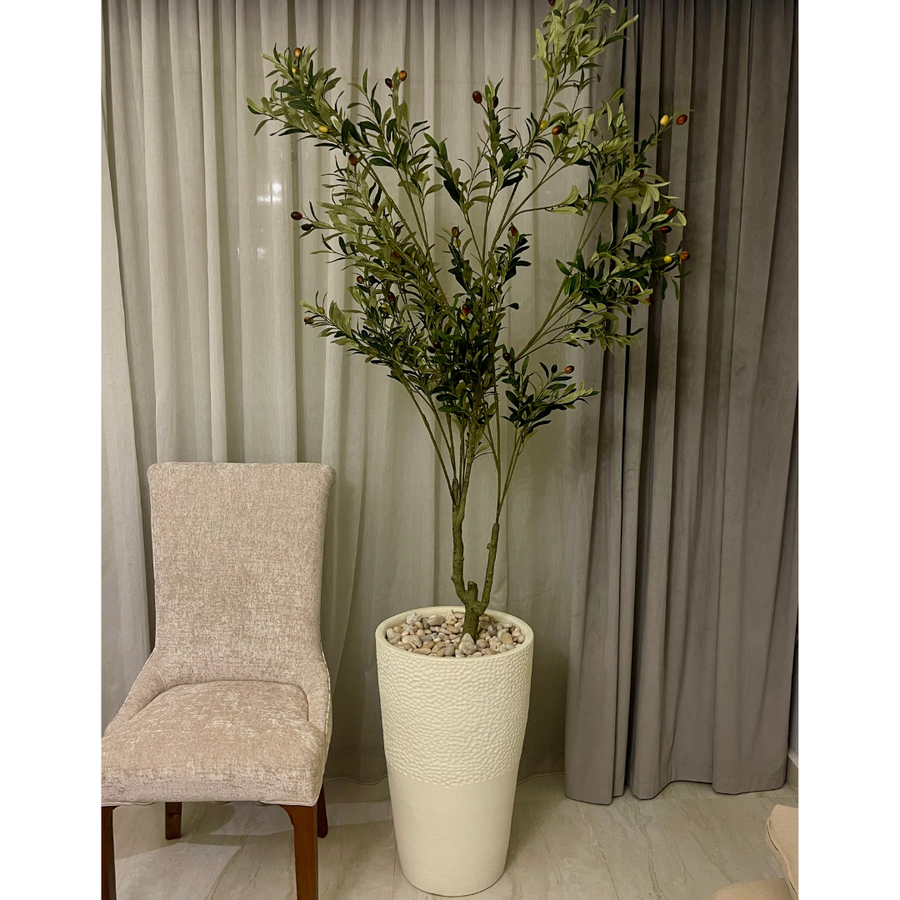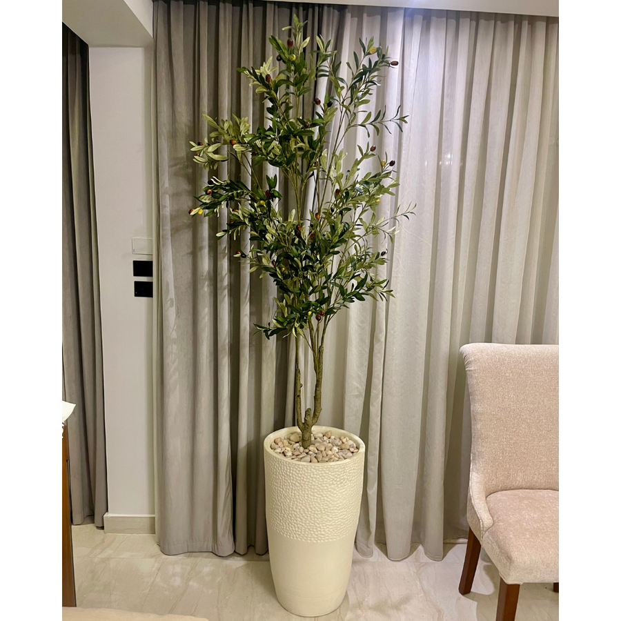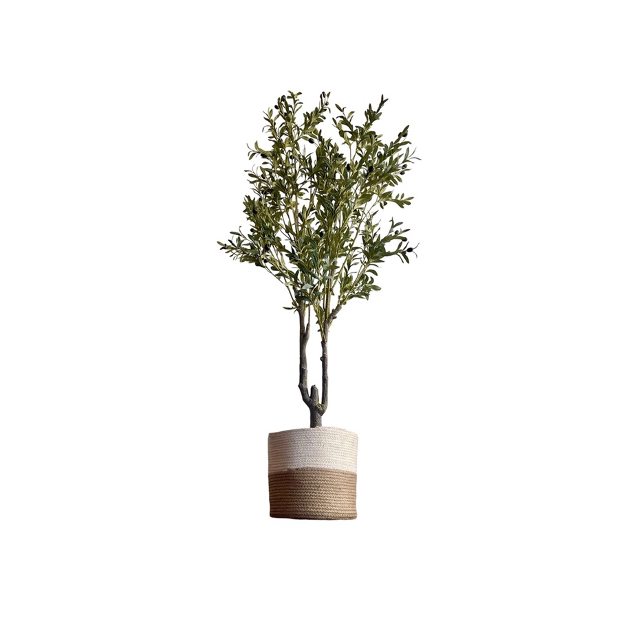 استمتع بإحساس الطبيعة والهدوء في مساحتك مع شجرة الزيتون الصناعية بارتفاع 180 سم وجذعين.