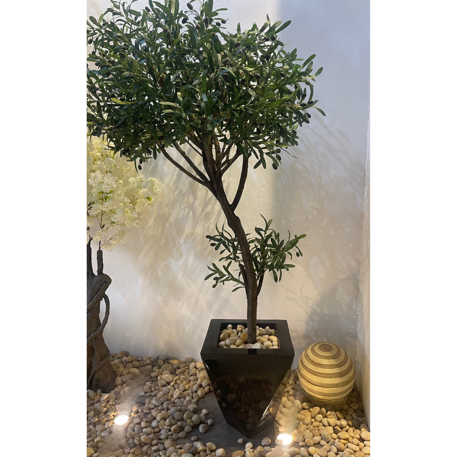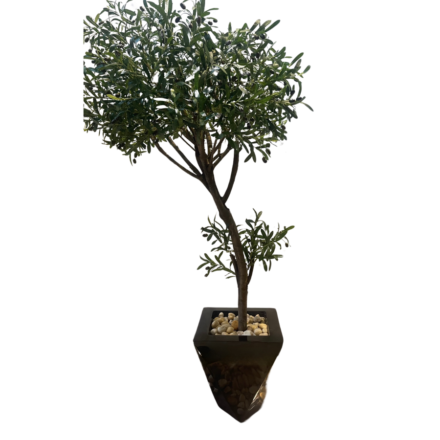 شجرة زيتون صناعية فاخرة تُصنع يدويًا حسب الطلب، بارتفاع من 170 حتى 220 سم، تتميز بمظهر طبيعي واقعي ولمسات تصميم دقيقة. مثالية للمنازل، المكاتب، الفلل أو الفنادق.
