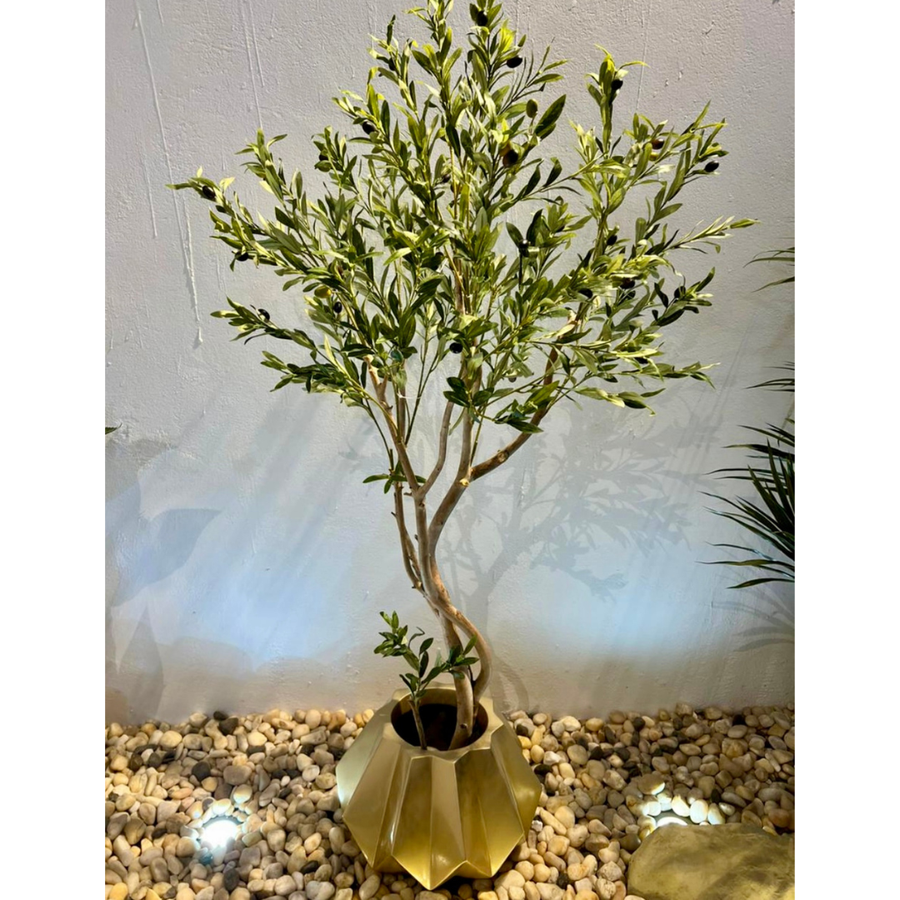 اجعل لديكورك لمسة طبيعية أنيقة مع شجرة الزيتون الصناعية بجذع واحد، بارتفاع مثالي 150 سم.