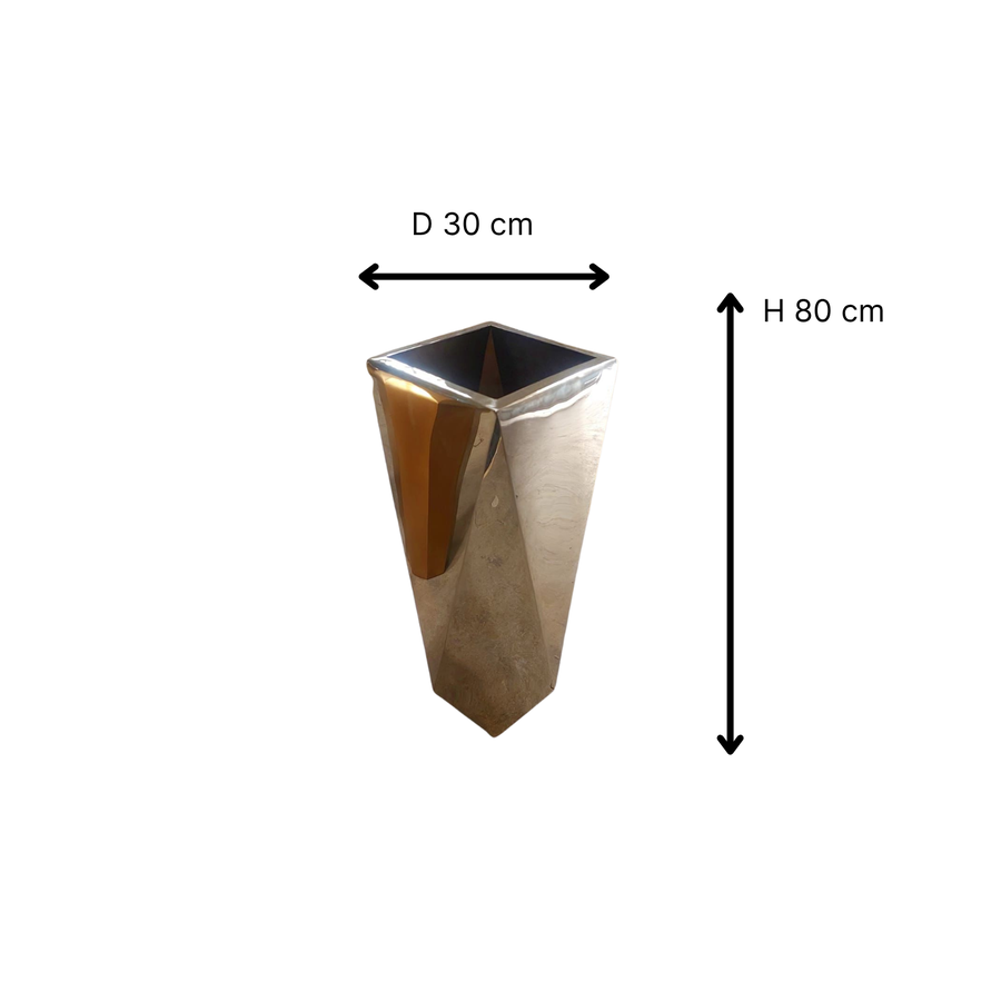 ارتقِ بديكور مساحتك لمستوى مختلف من الفخامة مع بوت الاستانلس ستيل 304 بتصميمه الهندسي الجريء ولمعانه العاكس للإضاءة.