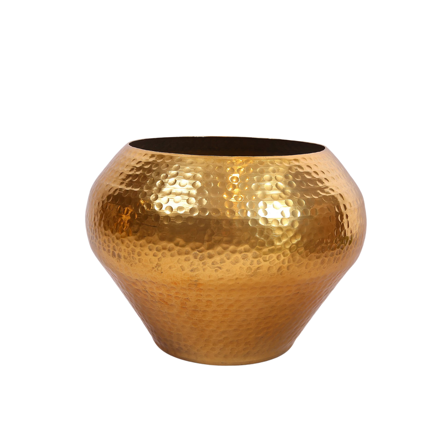 بوت ألومنيوم فاخر بتشطيب ذهبي يدوي، مقاس 30×35 سم، يجمع بين الأناقة والمتانة ليضيف لمسة فخامة عصرية للديكور الداخلي والخارجي.