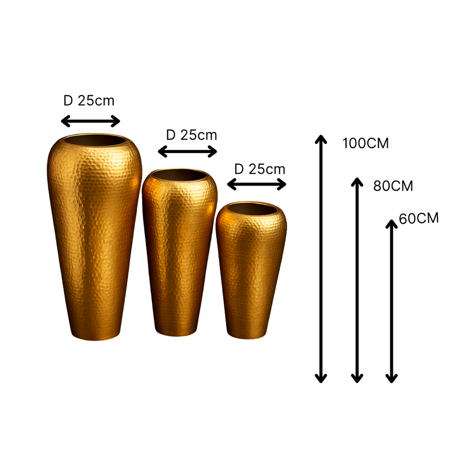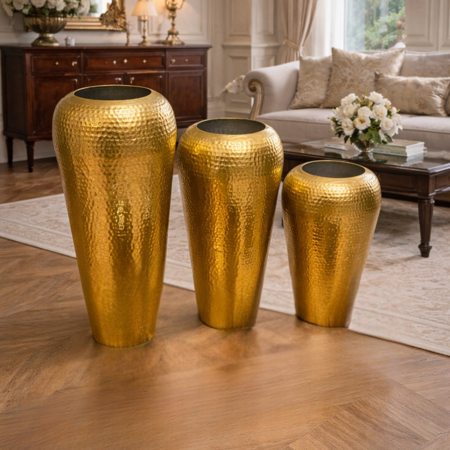 أضف لمسة فخامة حقيقية إلى مساحتك مع بوت الألومنيوم الذهبي بتصميمه المميز وملمسه المطروق الذي يعكس الضوء بطريقة جذابة.
